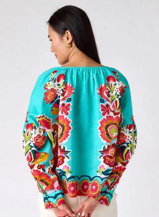 Blue Poppy Ruffle Novelty Ruffle Puff Slv Top