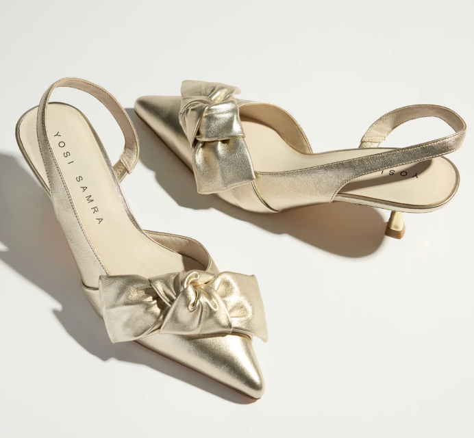 Kaleigh Bow Heel in Gold Leather