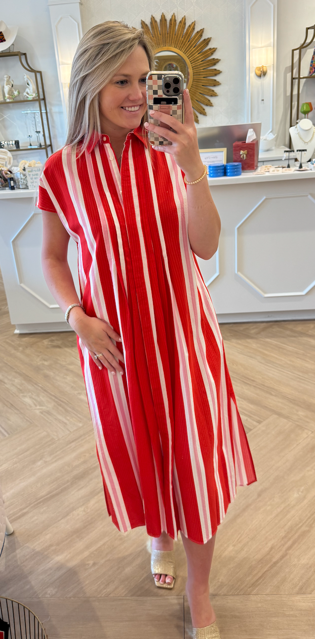 33251 RED STRIPED MIDI DRESS