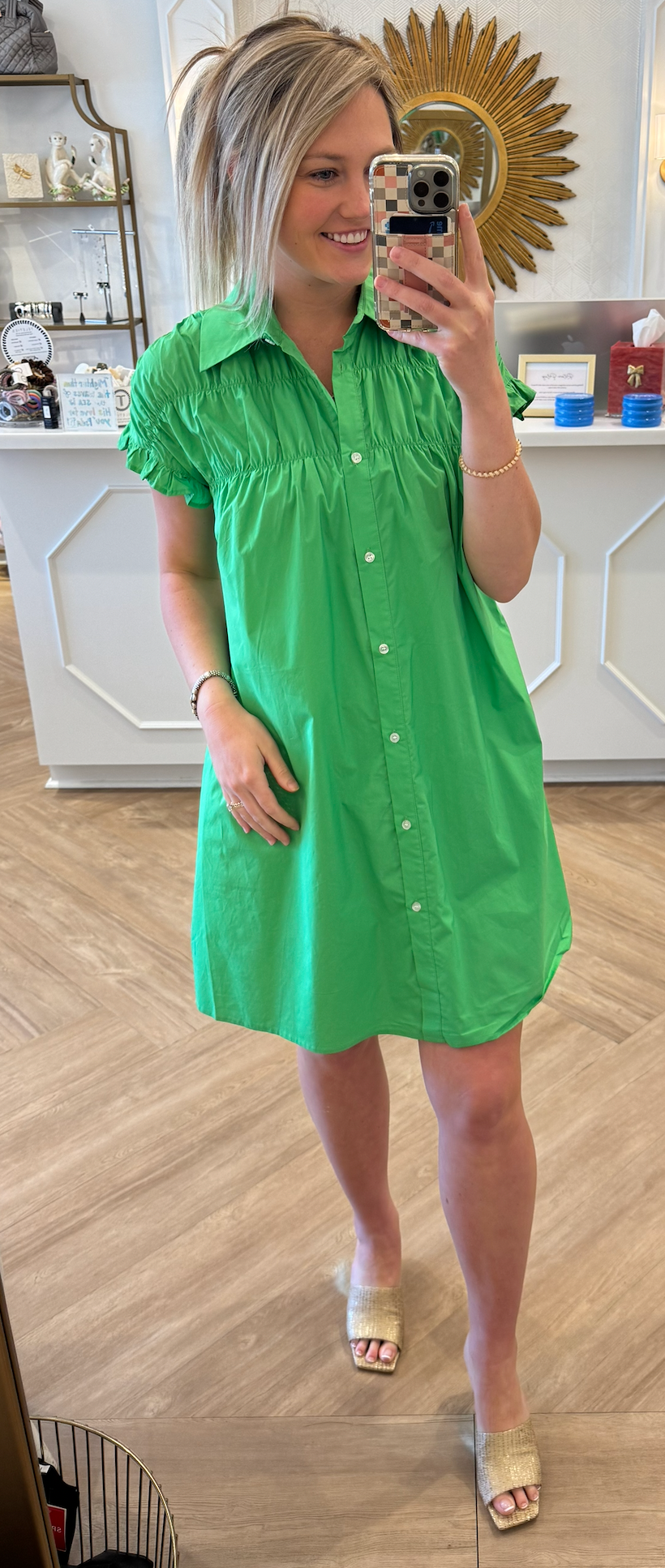 Green Poplin Gathered Dress