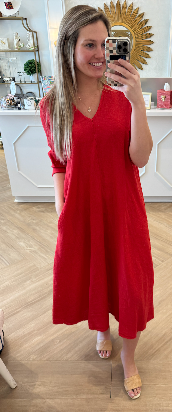 Linen Red Flame Maxi Dress