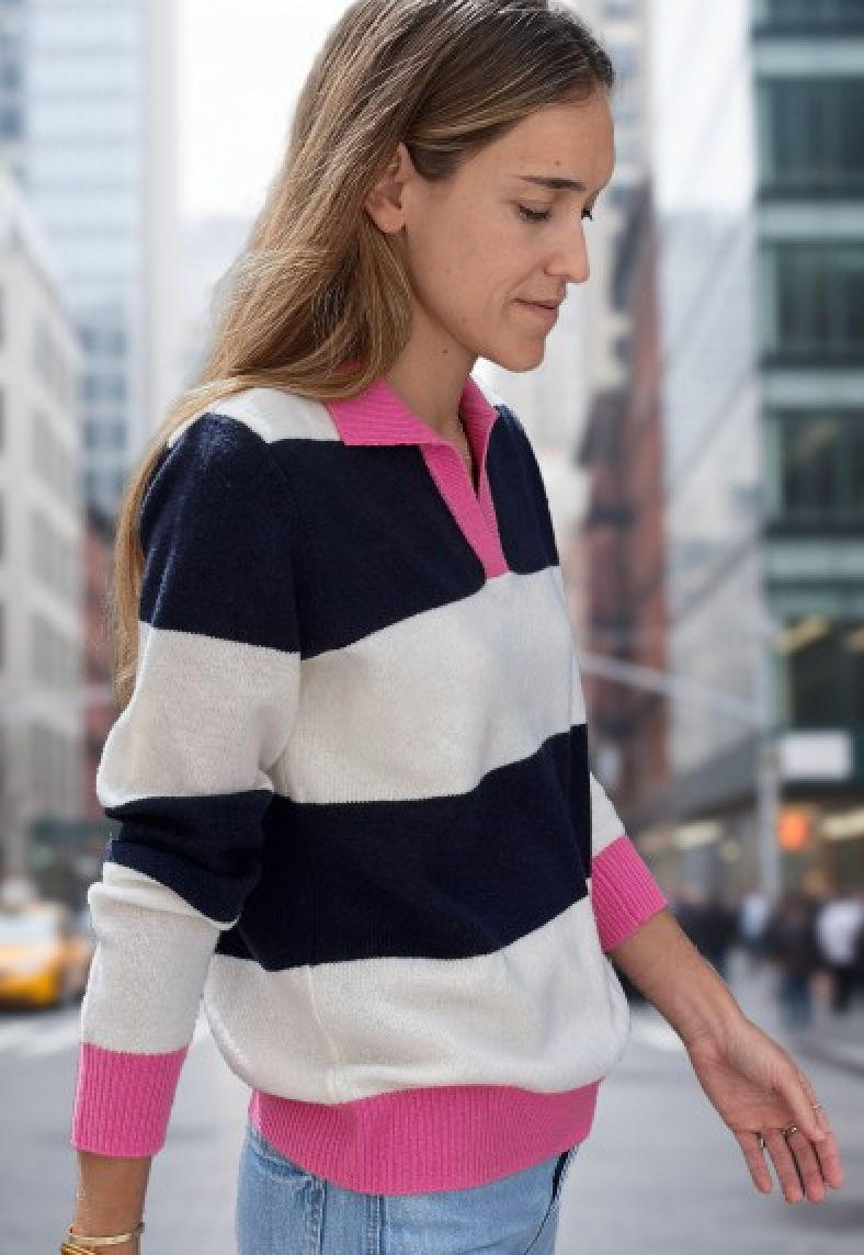 KNITWEAR JR CUELLO POLO EMB ECRU NAVY