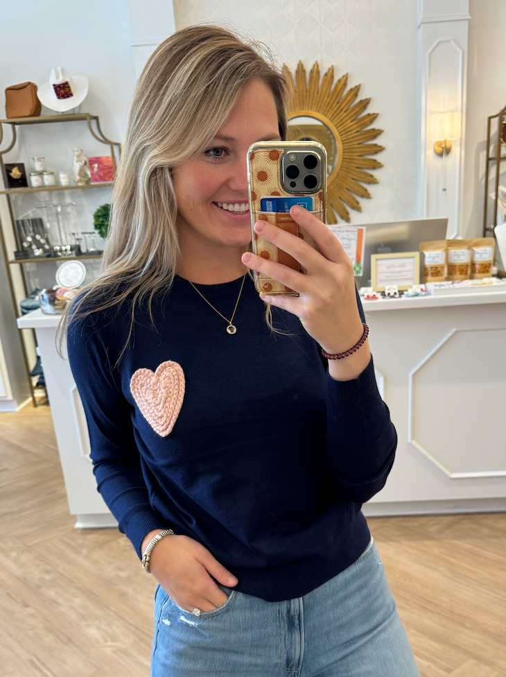 Navy Sweater with rope heart